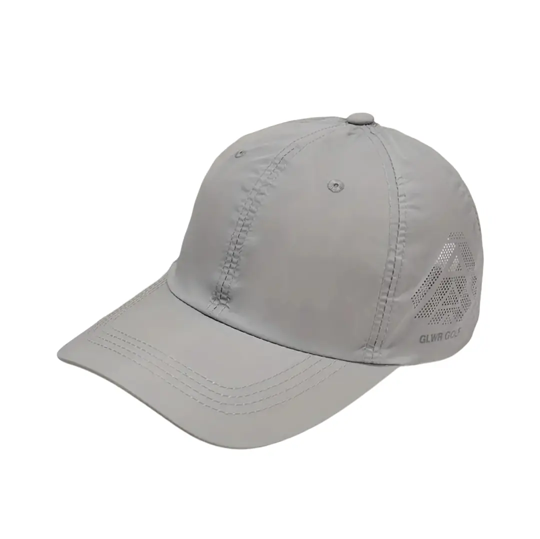 3- الجانب للقبعة مع شعار “ DHBR GOLF ” مطبوع على الجانب - تصميم مثقب بشكل هندسي “ اسهم ” على الجانب - قماش ناعم ذو لمعة خفيفة - حافة منحنية مصممة بشكل انسيابي