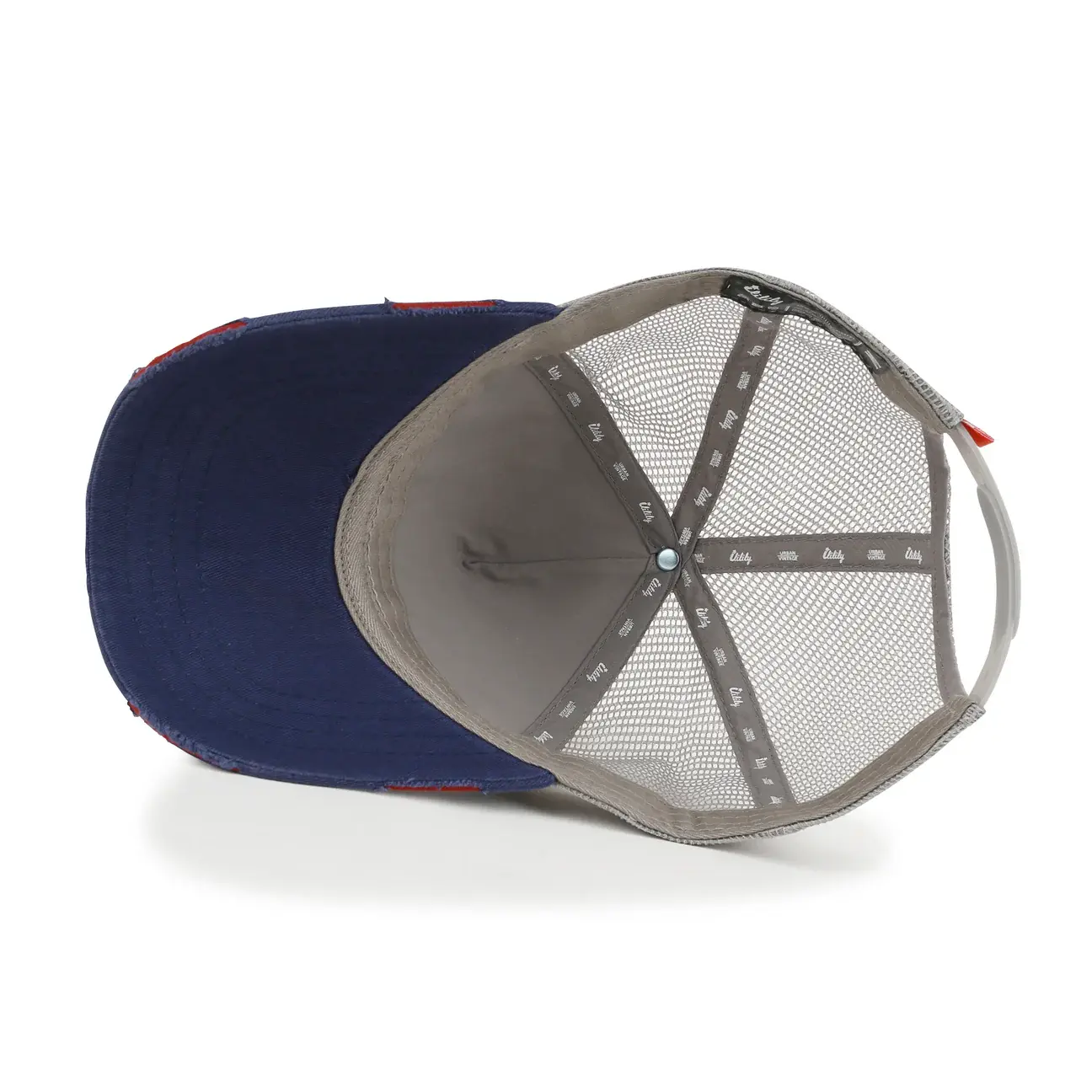 قبعة بيسبول بتصميم فاخر من قطن مشطور “ ممزق بشكل أنيق ” مع واجهة صلبة وشبك خلفي لإعطاء تهوية ممتازة تأتي مع رقبعة مطرزة لشعار “  American Muscle ”
