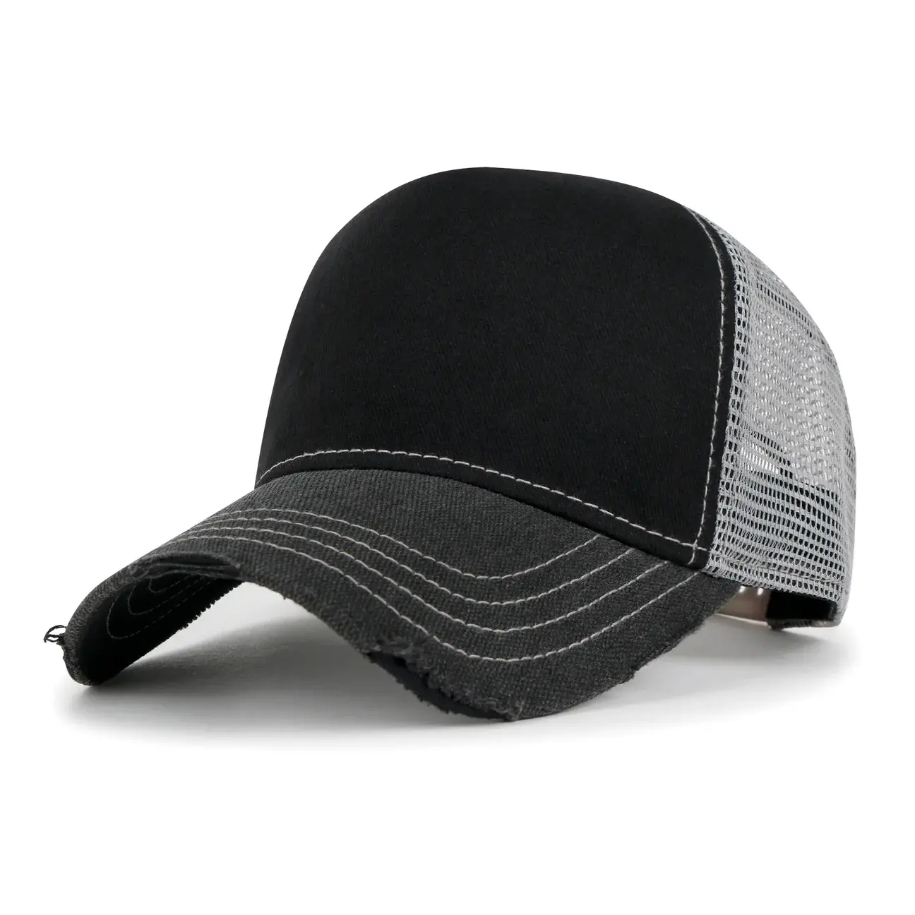 كاب بيسبول فاخر بتصميم سادة مصنوع من قماش قطني مع شبك خلفي لتهوية أفضل وراحة أثناء الارتداء. يتميز بتأثير مغسول (Distressed) مع خياطة متباينة، وحافة بتفاصيل متآكلة وخياطة ملوّنة من 4 خطوط لمظهر عصري.